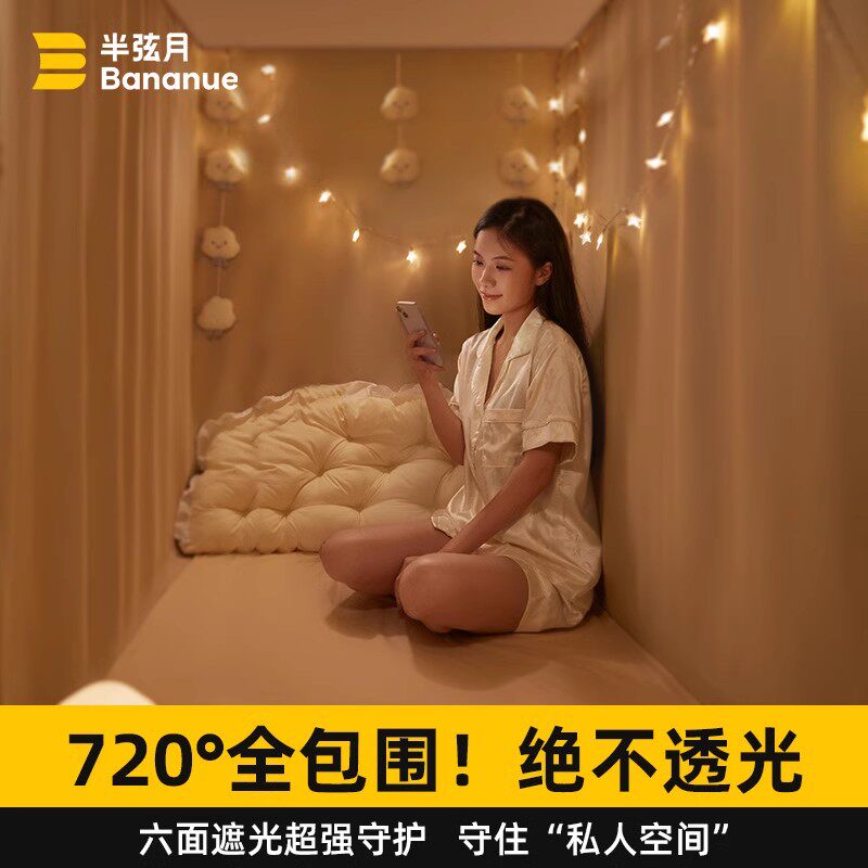 天猫半弦月大学生宿舍免安装上铺遮光床帘专用单人全包一体式床幔蚊帐
