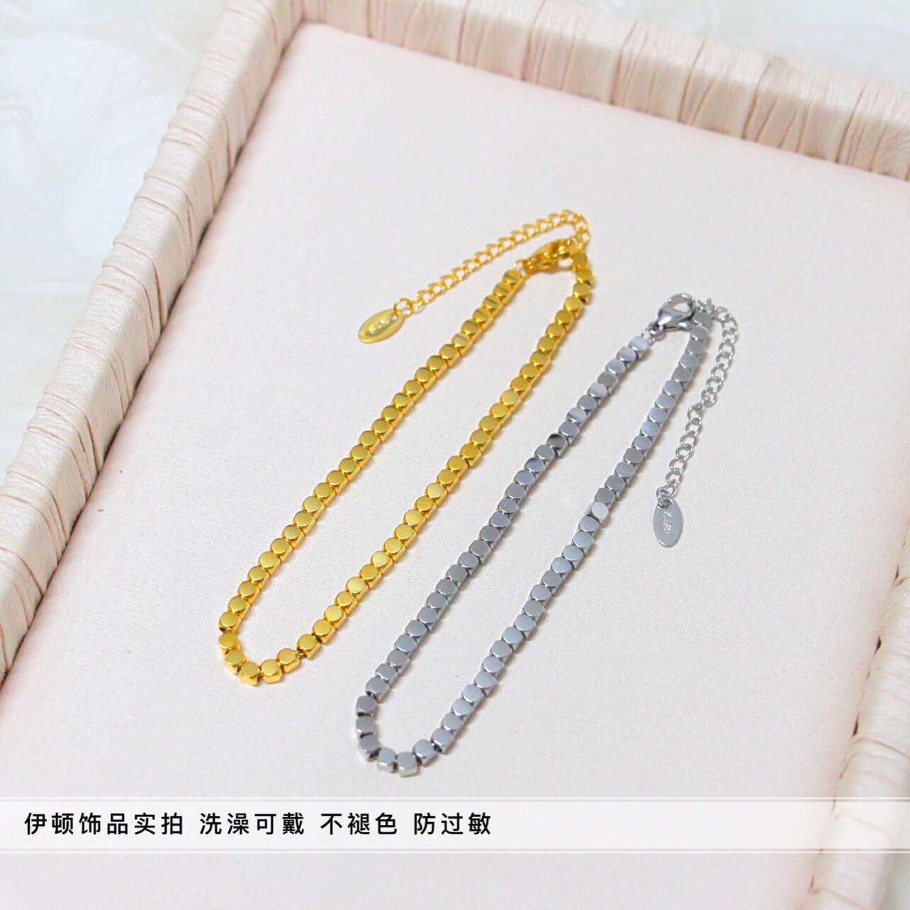 这款【洗澡不用摘】新款钛钢蹦迪脚链,采用高品质钛钢材质,轻盈耐磨、抗过敏,日常佩戴无负担,防水防锈,洗澡、游泳也无需摘下,持久如新。设计灵感源自都市夜生活,融入碎银般闪耀元素,链条细密灵动,行走间折射璀璨光芒,宛如星光点缀脚踝,尽显个性与时尚。无论是日常出街、度假旅行,还是夜店蹦迪,都能轻松驾驭,成为吸睛焦点。简约而不失张扬,是追求潮流与实用兼备的时尚达人心头好。戴上它,每一步都闪耀自信光芒。