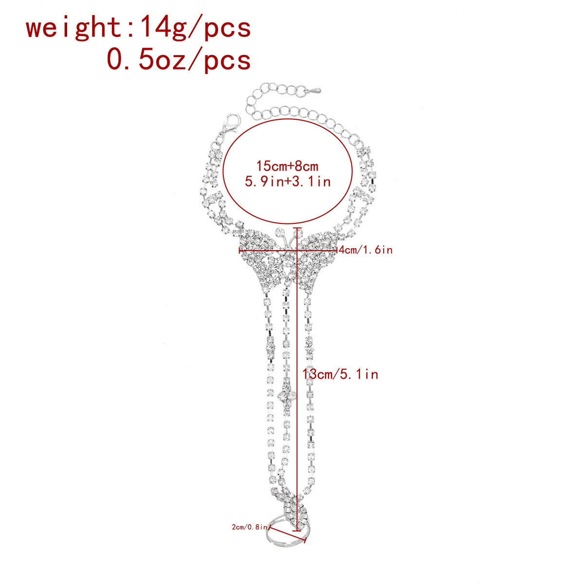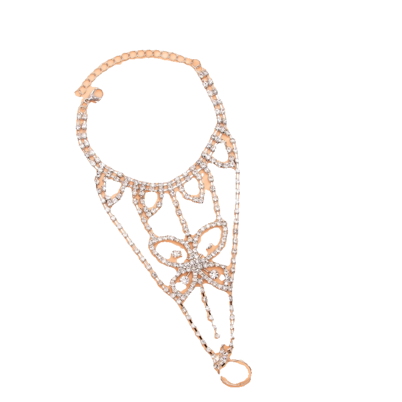 淘宝新款闪砖蝴蝶手链欧美夏季沙滩时尚复古轻奢水钻爪链连指脚饰饰品