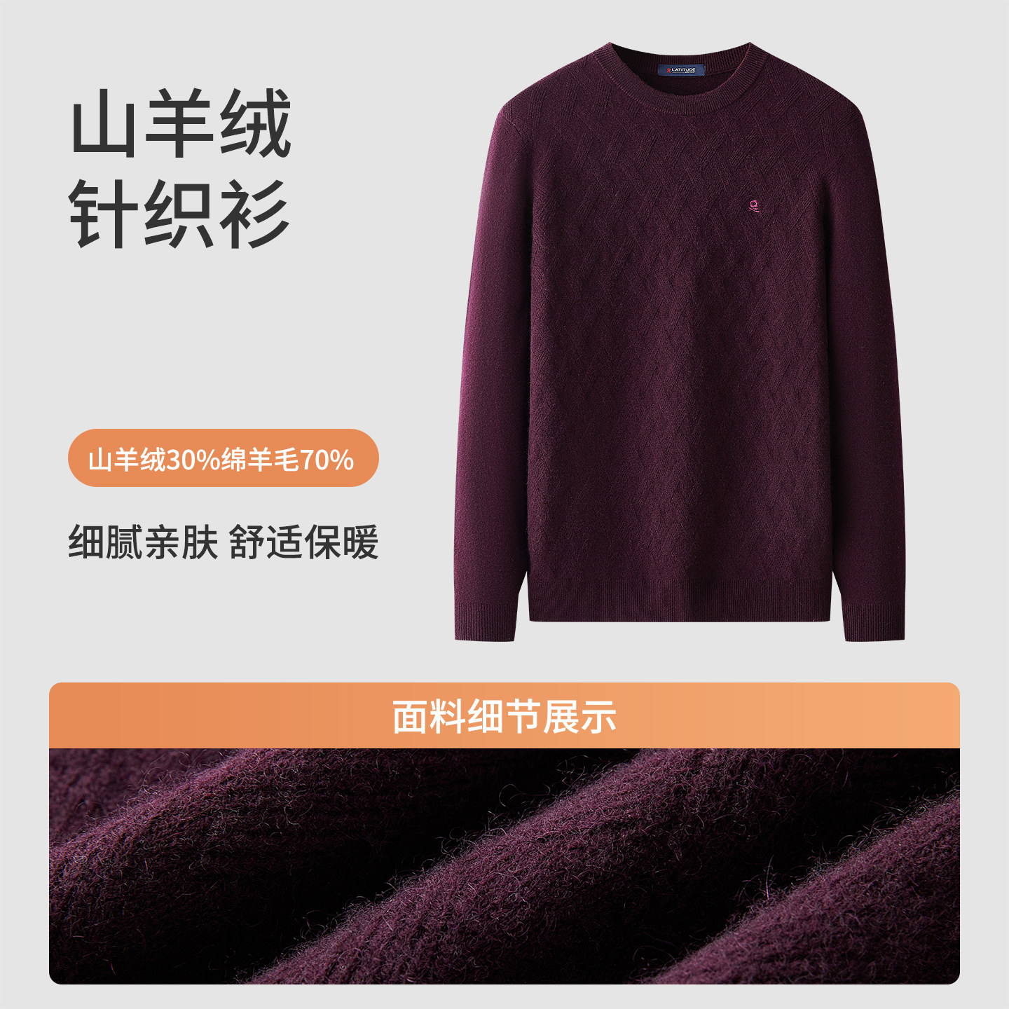 天猫[山羊绒]梦特娇男士羊绒衫25冬季圆领羊毛针织衫提花毛衣厚保暖J