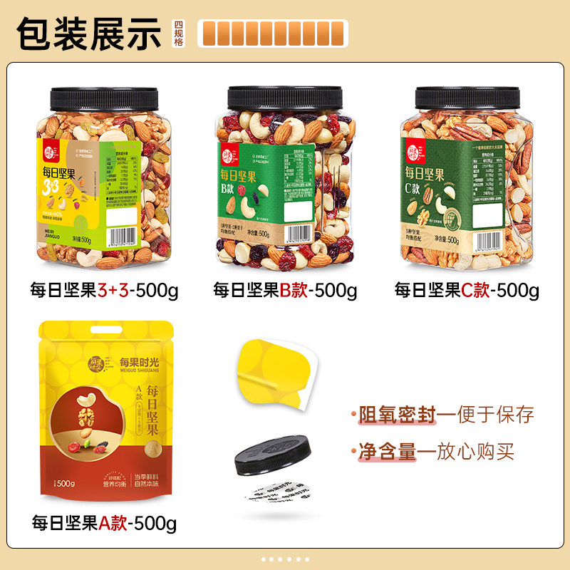 天猫每果时光每日坚果500g罐装原味干果坚果混合儿童果仁孕妇健康零食