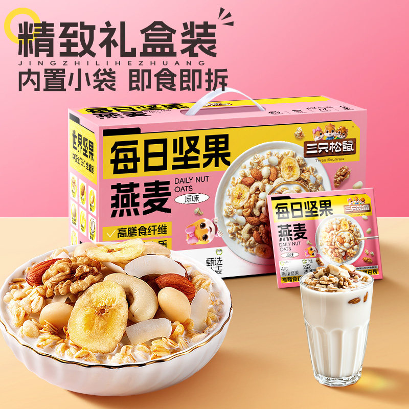天猫【三只松鼠每日坚果燕麦750g/30包】健康混合干果仁零食送礼盒