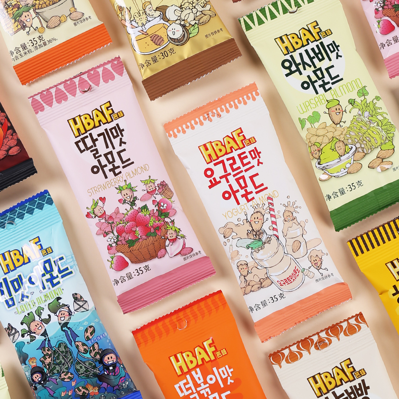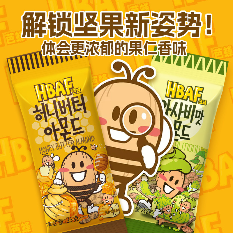 淘宝韩国进口HBAF芭蜂蜂蜜黄油扁桃仁腰果芥末汤姆农场坚果小包装零食