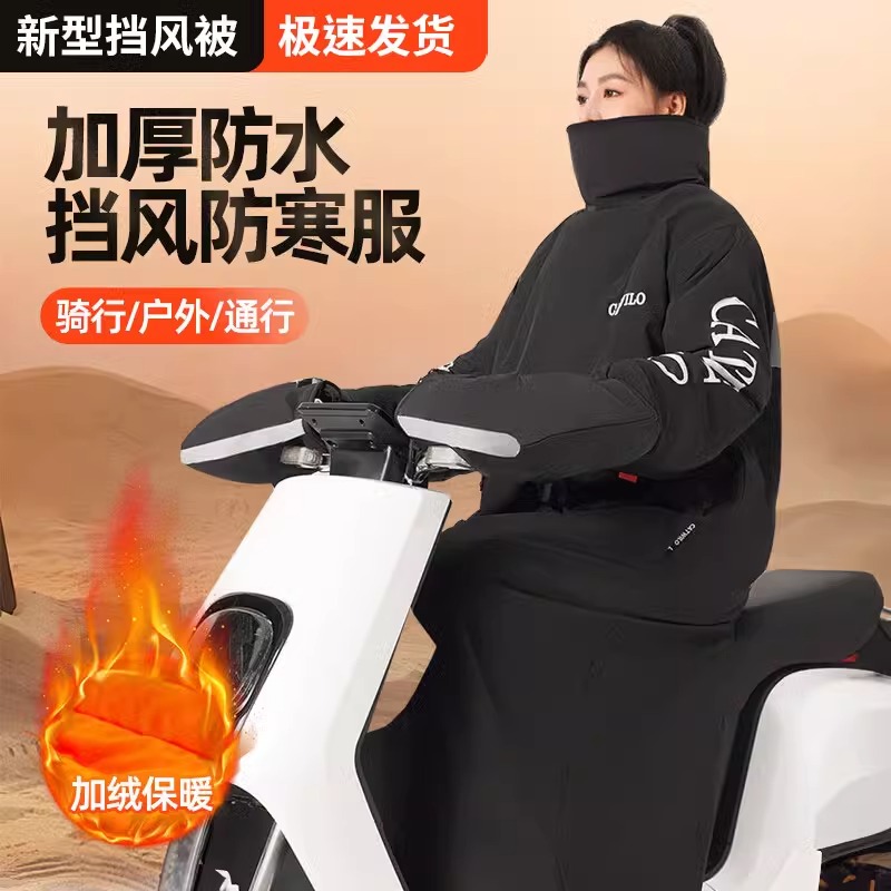 天猫电动车挡风被冬季加绒加厚电瓶摩托车防水挡风衣罩冬款骑行防寒服