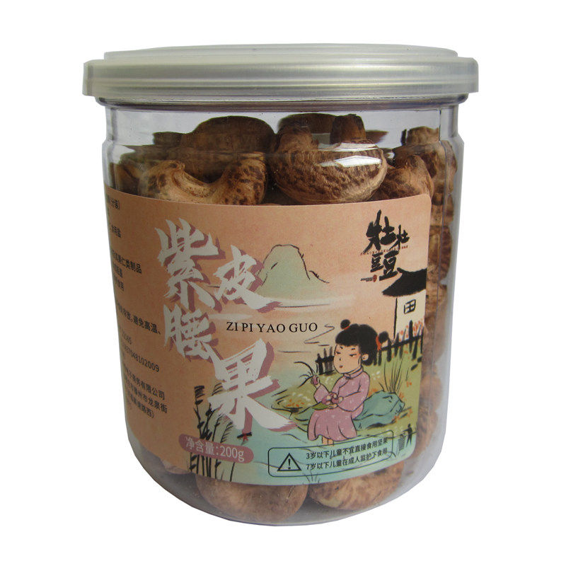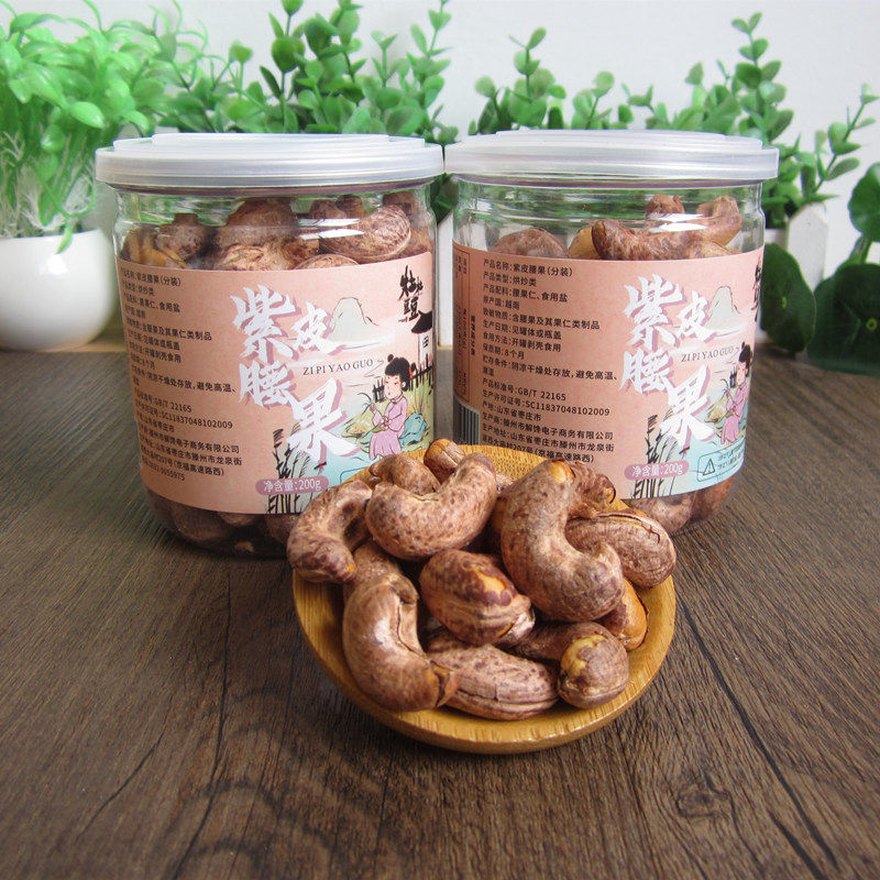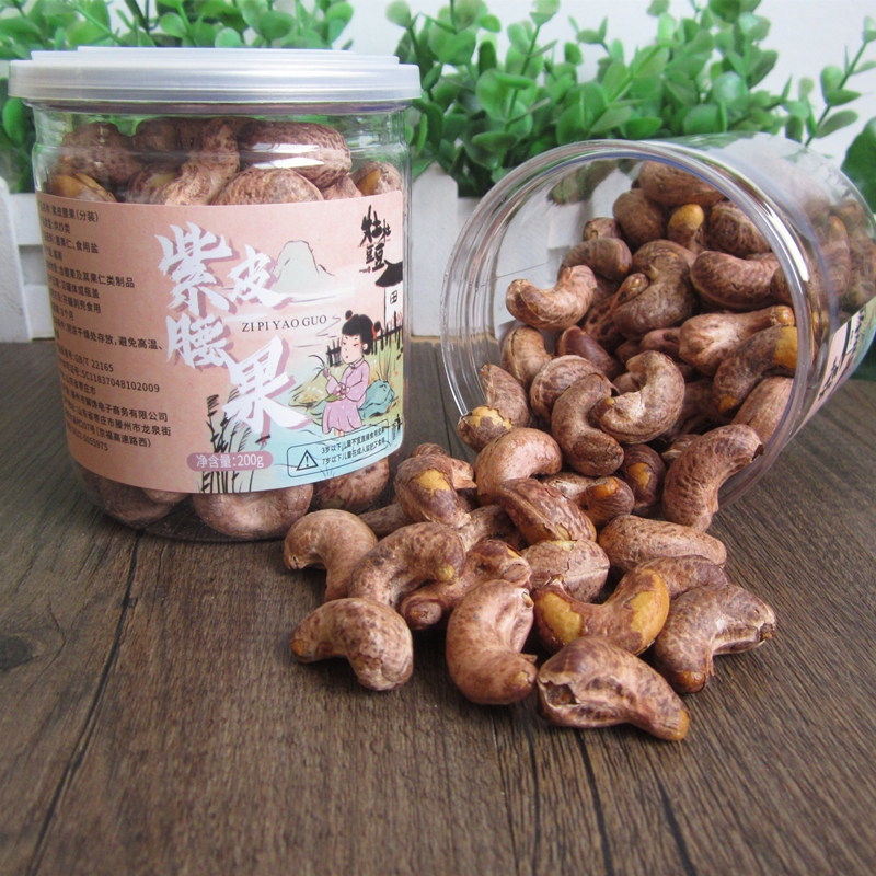淘宝壮壮豆豆25年罐装越南紫皮带皮炭烧大腰果仁紫衣500g坚果零食干果