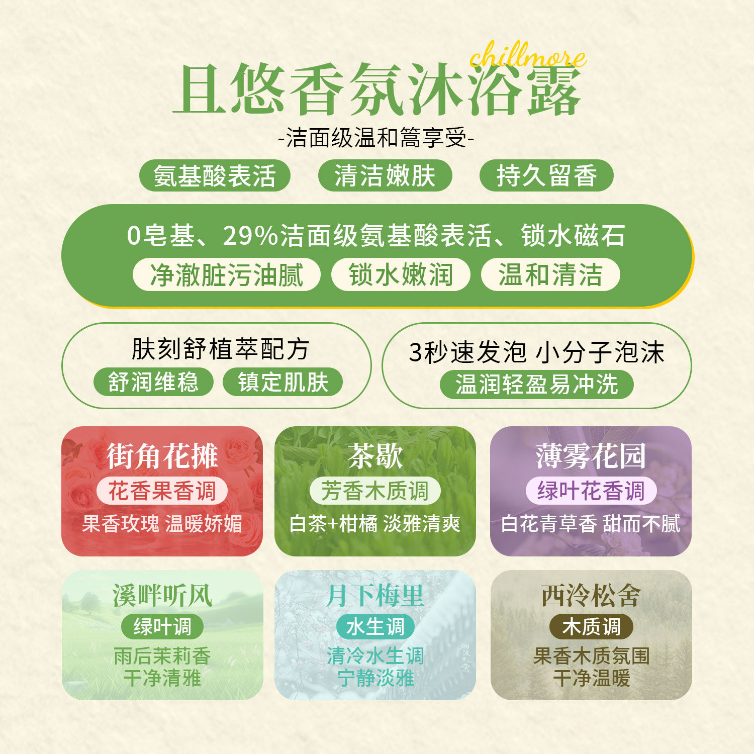 淘宝chillmore且悠沐浴露秋冬滋润女男士持久留香氨基酸沐浴乳液茶歇