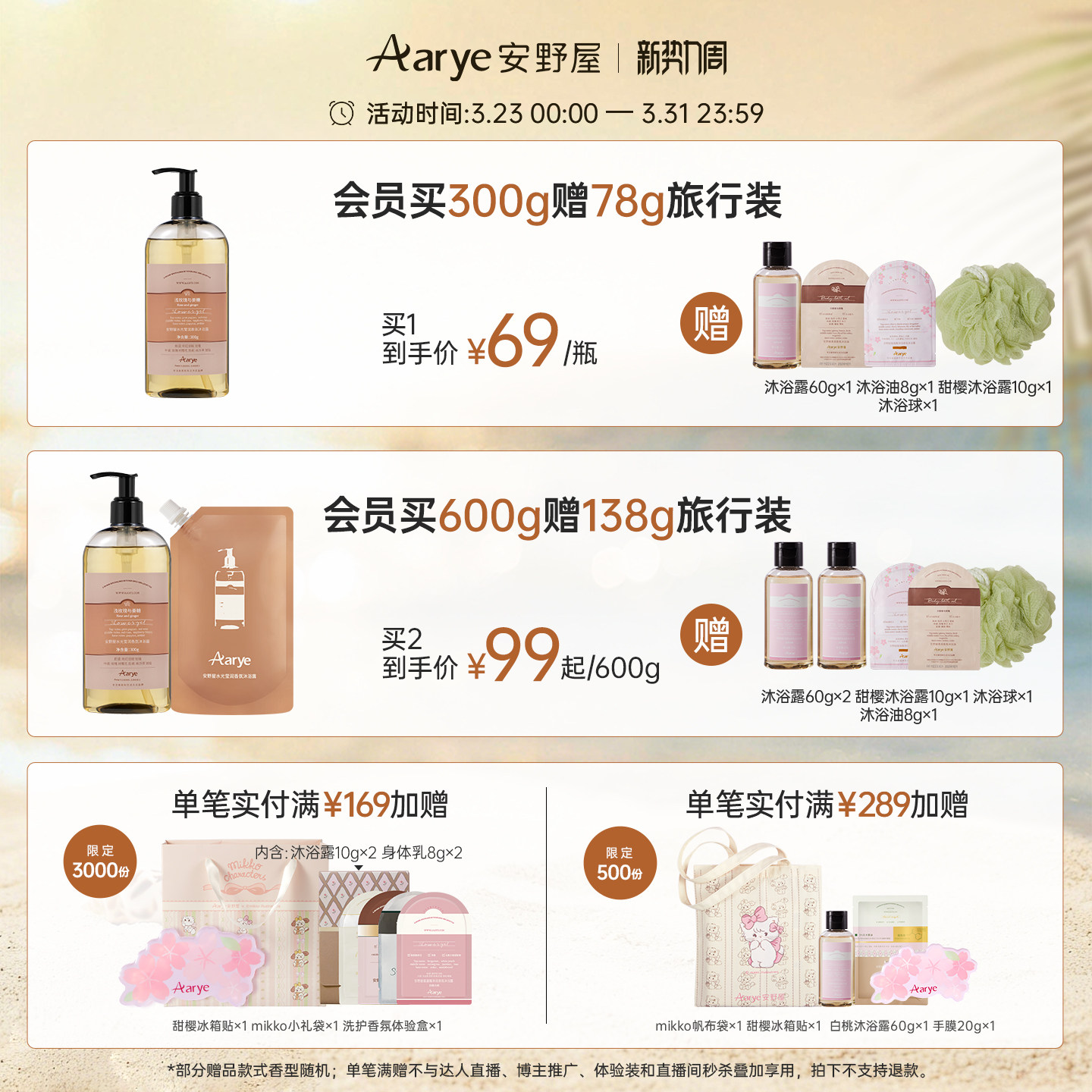天猫【浅玫瑰与姜糖】aarye安野屋水光沐浴露烟酰胺焕亮控油保湿香氛