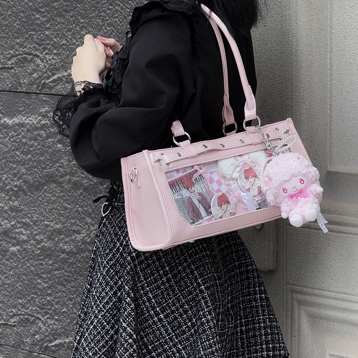 AORDA日常外出可爱斜挎小食量制服二次元追星娃谷两用痛包,专为热爱二次元文化的萌系少女设计。包身采用轻便耐用材质,小巧精致却容量实用,可轻松收纳娃用配件、谷子(周边)、零食及日常小物。独特“痛包”风格融合制服元素与动漫图案,个性十足,背带可调节,斜挎单肩皆宜。无论是参加漫展、追星应援,还是日常出街,都能彰显你的独特萌趣风格。既是实用收纳包,也是展现爱好的时尚配饰,让每一次外出都充满二次元元气与可爱能量!