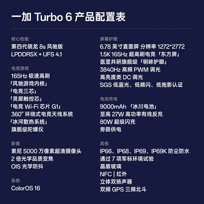 【政府补贴】一加 Turbo 6 性能超标 续航久到离谱 165 超高刷电竞东方屏 电竞三芯 9000mAh 冰川电池 AI手机