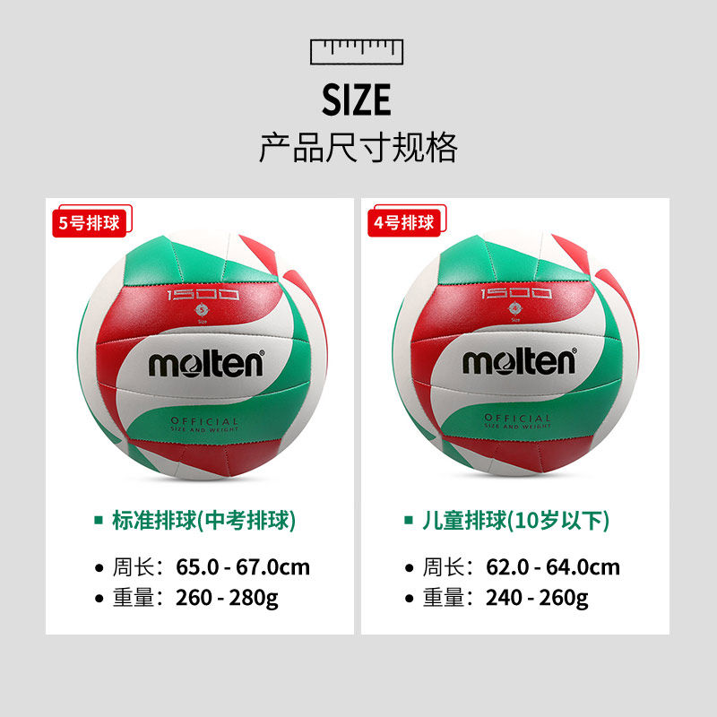 天猫molten摩腾官方中考专用排球男女学生软皮耐磨5号4号1500硬排正品