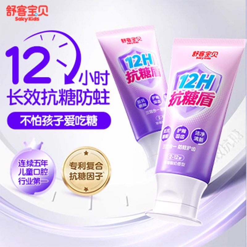 【郭晶晶推荐】舒客宝贝臻护12小时抗糖盾防蛀儿童牙膏,专为3-12岁宝宝设计,含科学配比氟化物,有效预防蛀牙。创新“抗糖盾”技术,12小时持续阻隔口腔糖分侵蚀,从源头减少致龋风险。精选温和配方,低泡低刺激,保护娇嫩口腔黏膜,让孩子刷牙更安心。水果清香口感,激发孩子刷牙兴趣,养成良好口腔习惯。郭晶晶作为奥运冠军与模范妈妈,倾力推荐这款安全有效的儿童牙膏,守护孩子灿烂笑容。舒客宝贝,专注儿童口腔健康,让每一次刷牙都成为爱的呵护。