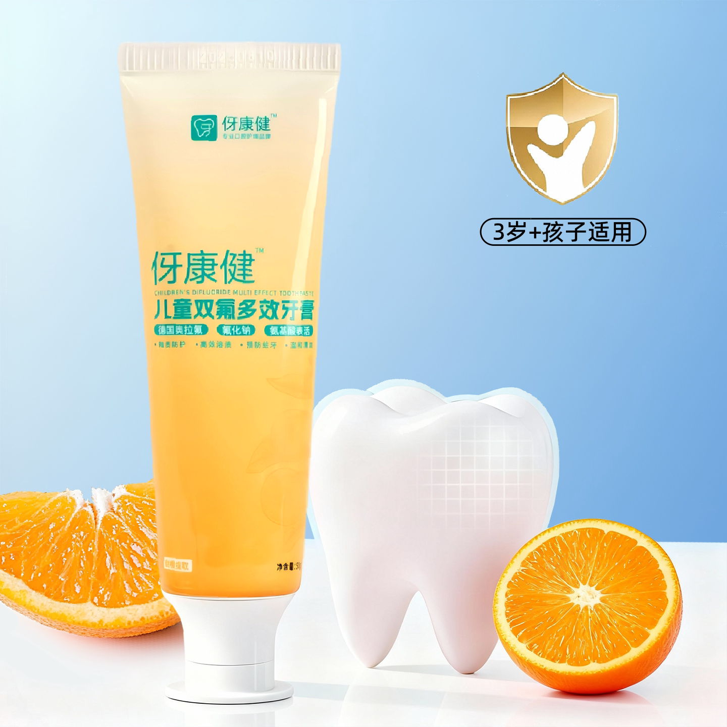 天猫伢康健儿童菌斑可视牙膏显色牙菌斑3-12岁双氟防蛀固齿甜橙味