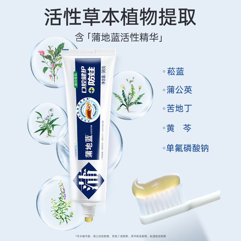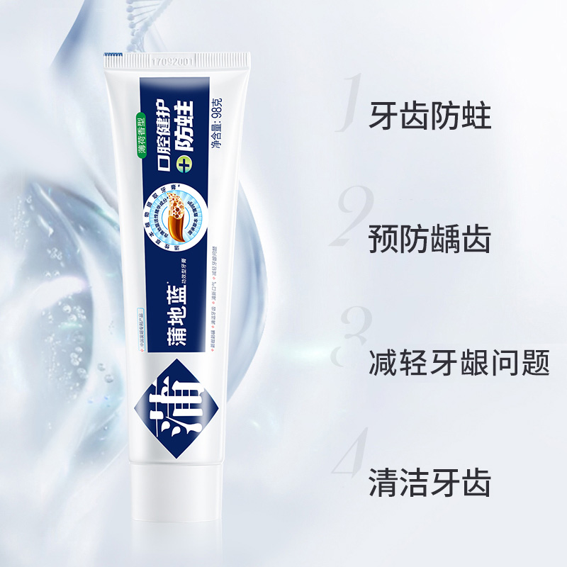 天猫蒲地蓝牙膏口腔健护防蛀薄荷味防蛀含氟成人牙龋齿高氟清洁蛀牙
