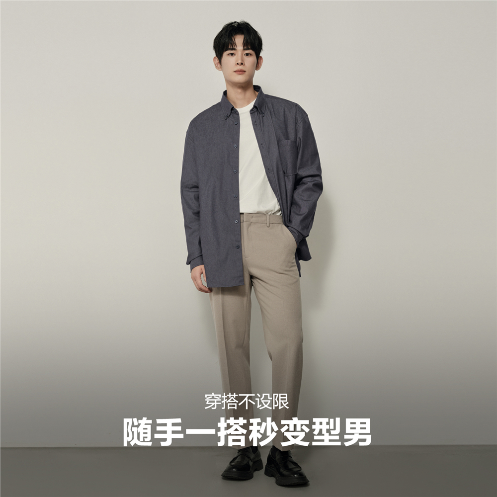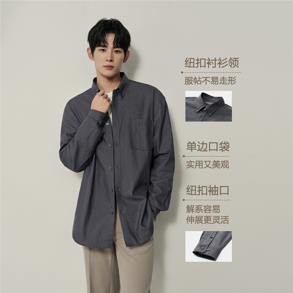 天猫【韩国同款】佐丹奴男装复古纯棉单口袋宽松长袖牛仔衬衫01045880