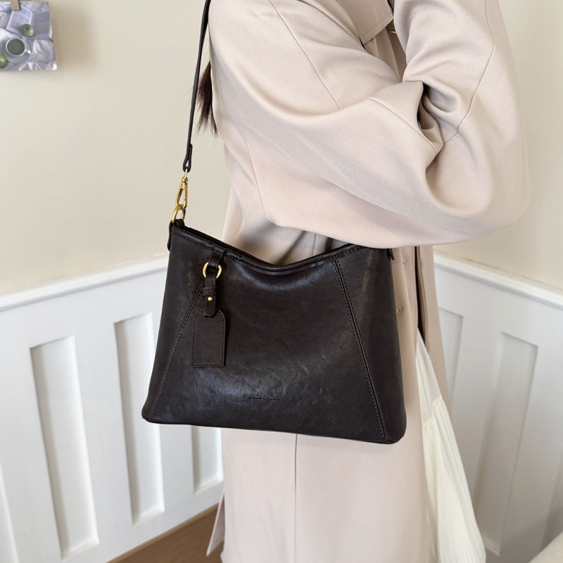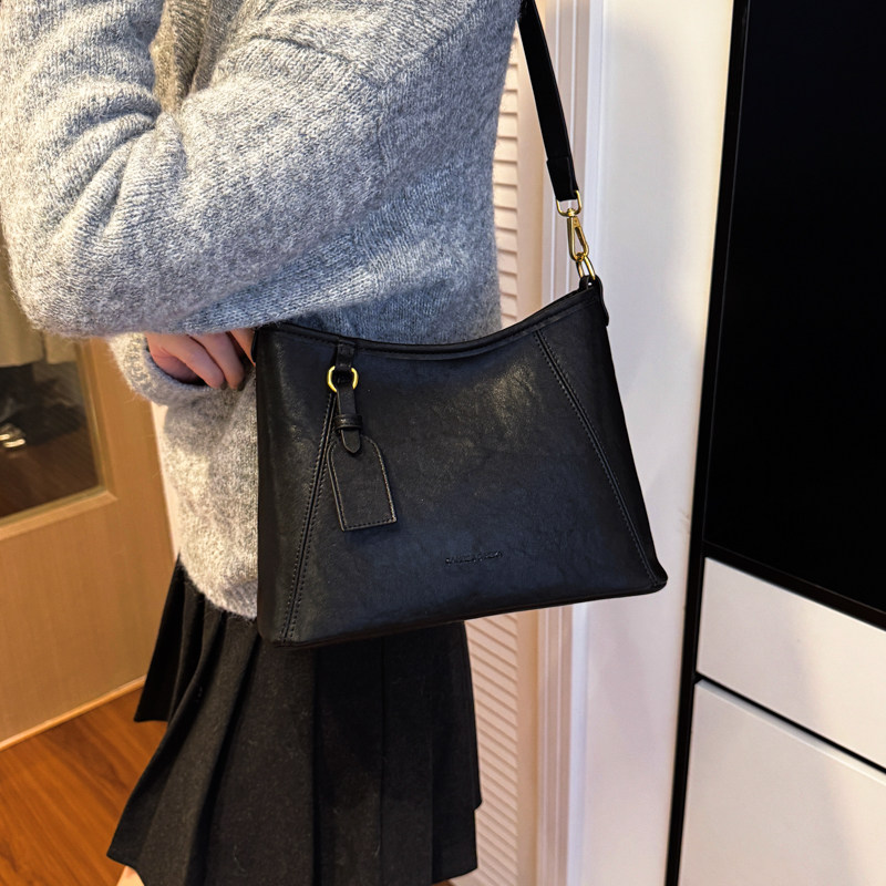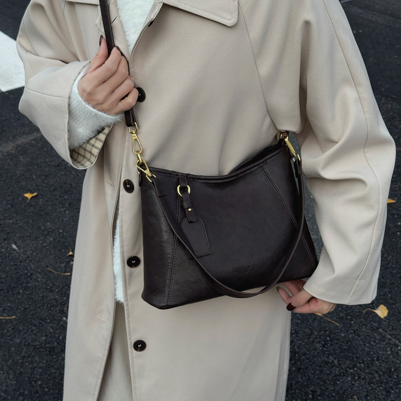 高级感复古黑色托特包女2026新款大容量PU皮质单肩包通勤包包女