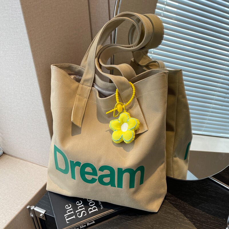 淘宝简约休闲帆布包包女新款夏季大容量通勤单肩托特包学生手提购物袋