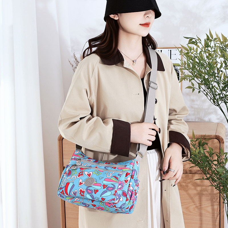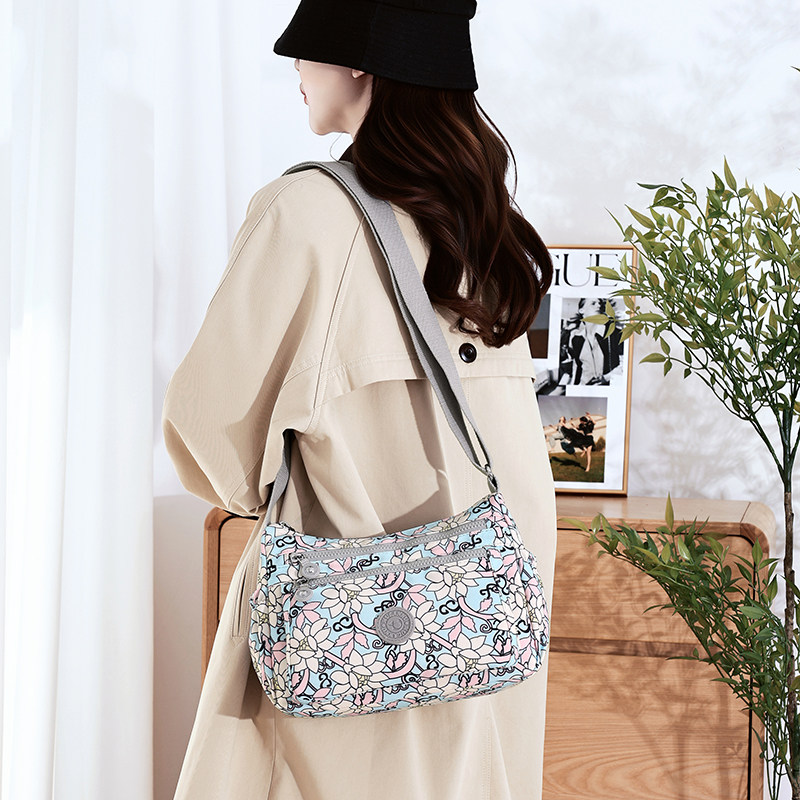 天猫女士印花尼龙包多层大容量牛津布单肩斜挎包轻便休闲女包防水包包