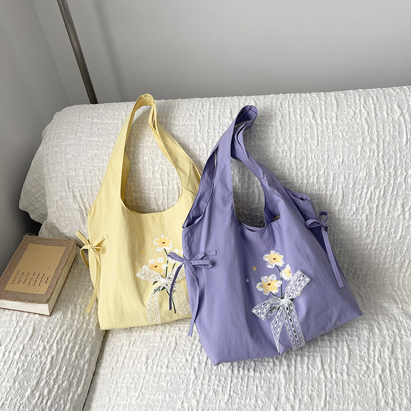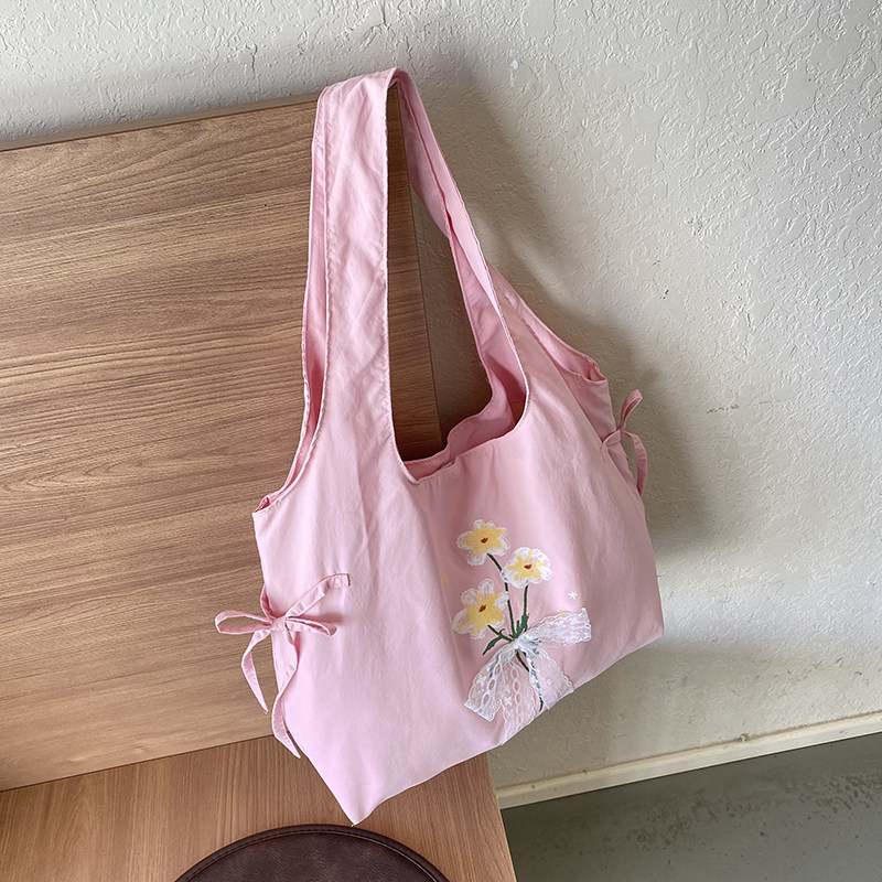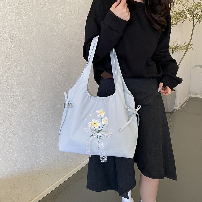 淘宝文艺小清新花朵刺绣托特包女大容量系带通勤单肩包少女风帆布袋包
