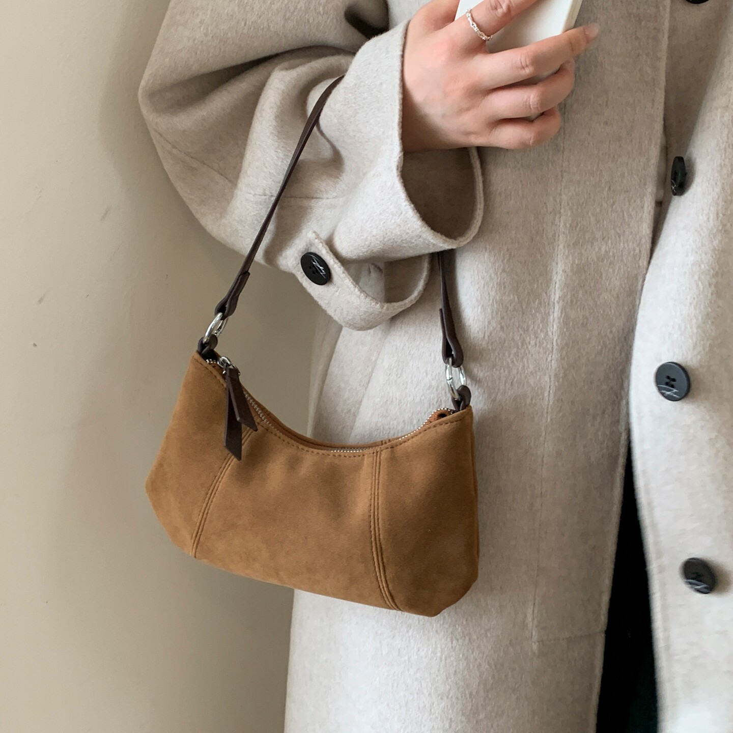 2026年新款女士复古小众设计磨砂单肩腋下包,以经典饺子包型为灵感,融合现代极简美学,打造通勤百搭单品。采用优质磨砂质感面料,触感细腻,低调高级,兼具耐磨与实用。小巧包身恰到好处容纳日常 essentials,肩带可调节,支持单肩、斜挎、腋下多种背法,轻松适配职场、约会或休闲场景。复古色调如焦糖棕、燕麦米、墨绿等,彰显独特品味,小众设计避免撞包尴尬。精致五金配件与流畅走线细节,尽显匠心工艺。无论是搭配大衣、西装还是连衣裙,都能为整体造型增添一抹复古优雅气息,是追求质感与风格的现代女性的理想之选。