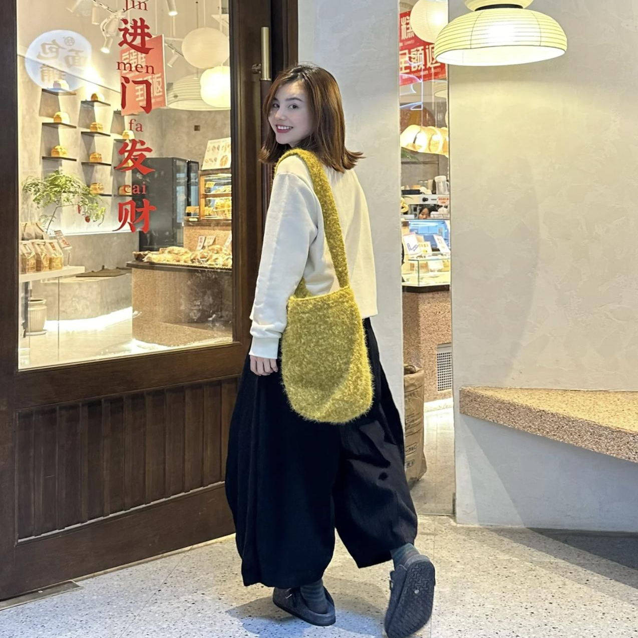 淘宝黄果树与冬”软茸毛呢包 绒毛毛水桶包大容量秋冬斜挎单肩布袋