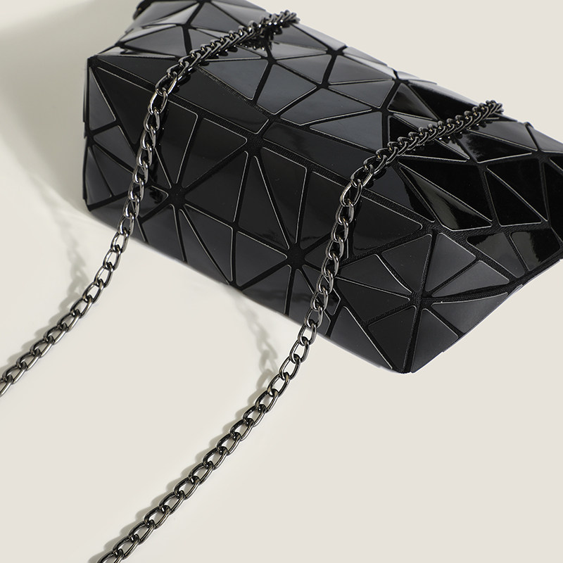 淘宝日本バッグ2025春夏新款几何菱格夜光镭射单肩斜挎链条饺子手拿包