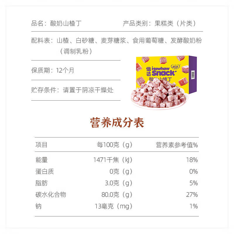 【直播间热销款】怡达梦酸奶山楂丁,精选优质山楂,融合浓郁酸奶风味,酸甜交织,口感Q弹爽滑,每一口都唤醒味蕾。175g大容量装,3盒超值组合,满足全家分享或囤货需求。采用传统蜜饯工艺与现代技术结合,保留山楂天然营养,无人工色素添加,健康又安心。无论是追剧、办公还是旅行途中,都是解腻开胃的理想零食。独立小包装设计,方便携带,随时享受酸甜好滋味。直播间限时优惠,销量火爆,好评如潮,是追求健康美味零食的必入之选!快来抢购,感受舌尖上的酸甜小确幸!