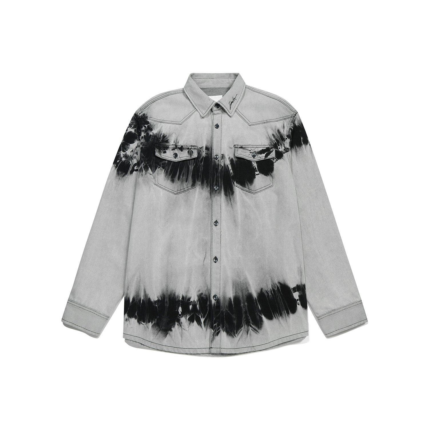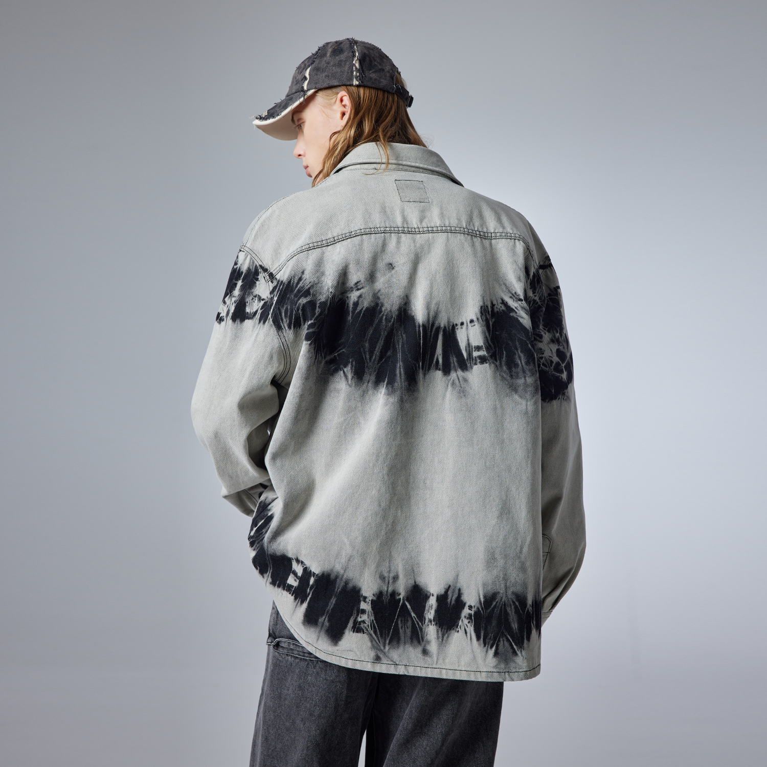 天猫GUUKA废土风浅灰色美式高街长袖衬衫男 情侣牛仔衬衣泼墨外套宽松