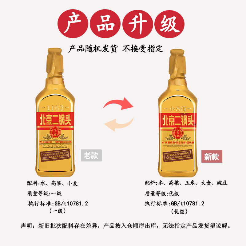 天猫出口小方瓶 永丰牌北京二锅头清香型纯粮白酒 46度金方瓶 礼盒装