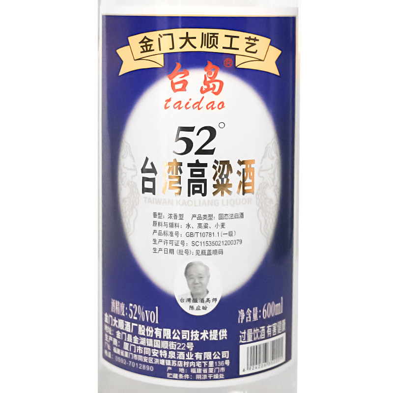 天猫台岛(taidao)台湾高粱酒52度整箱6瓶装浓香型高度白酒粮食酒