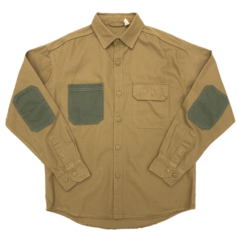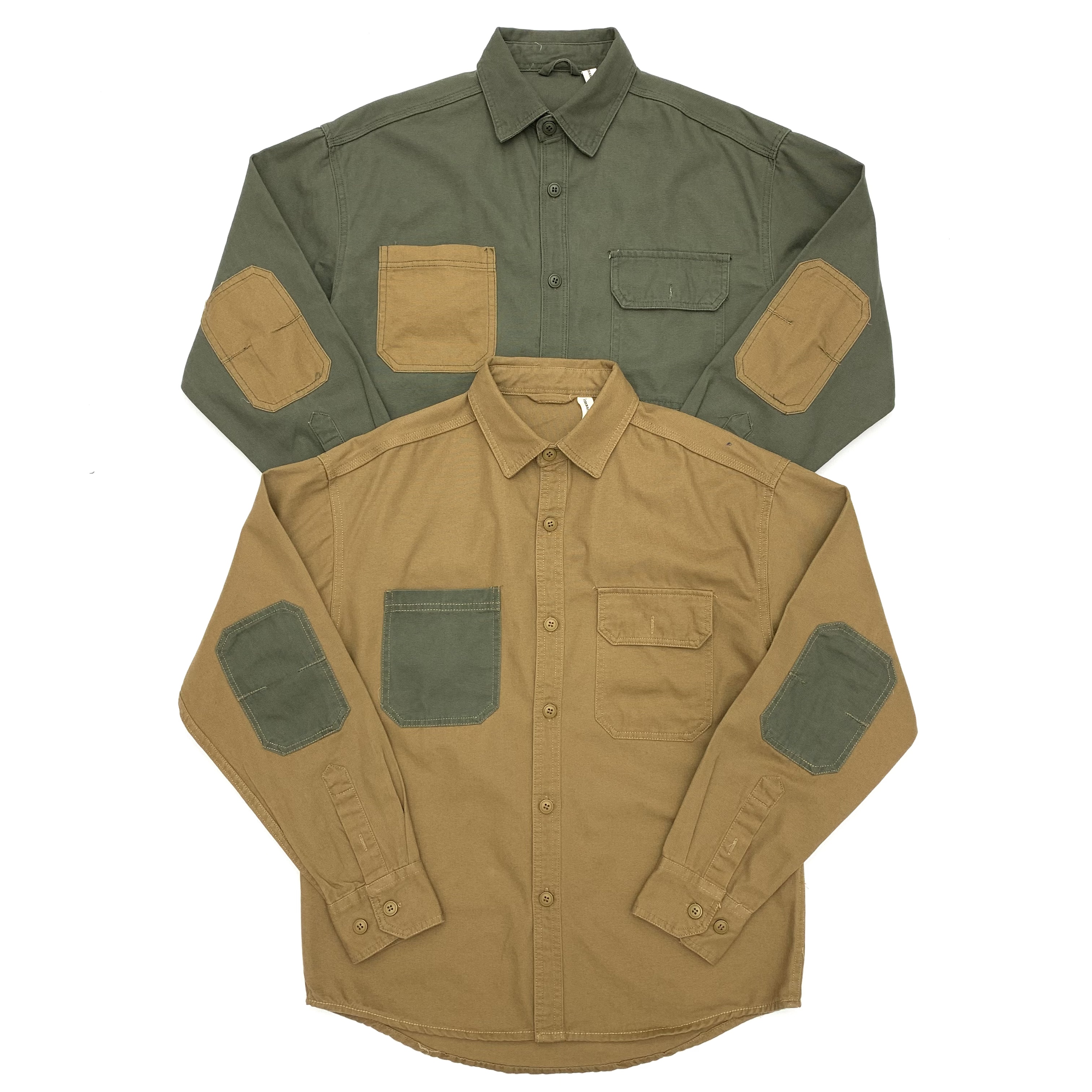 淘宝重磅帆布长袖衬衫全棉美式工装复古拼色大码秋冬拼接军绿色上衣男