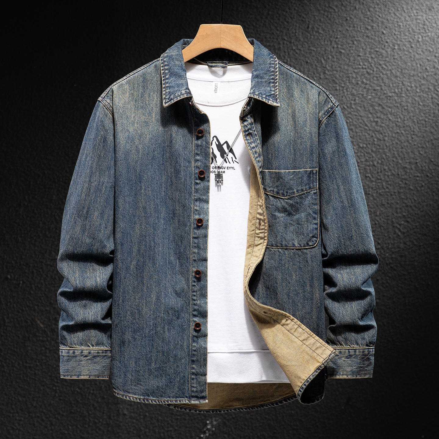 淘马克斯星球 卡其色柔软牛仔外套衬衫男秋冬新款韩系简约宽松休闲