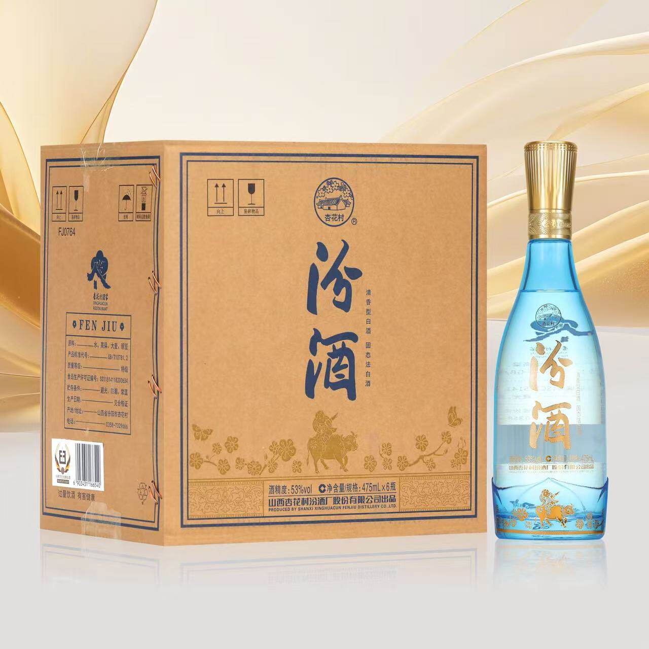 天猫汾酒山西杏花村牧童水晶汾玻汾口粮酒53度清香型白酒475mL×6瓶
