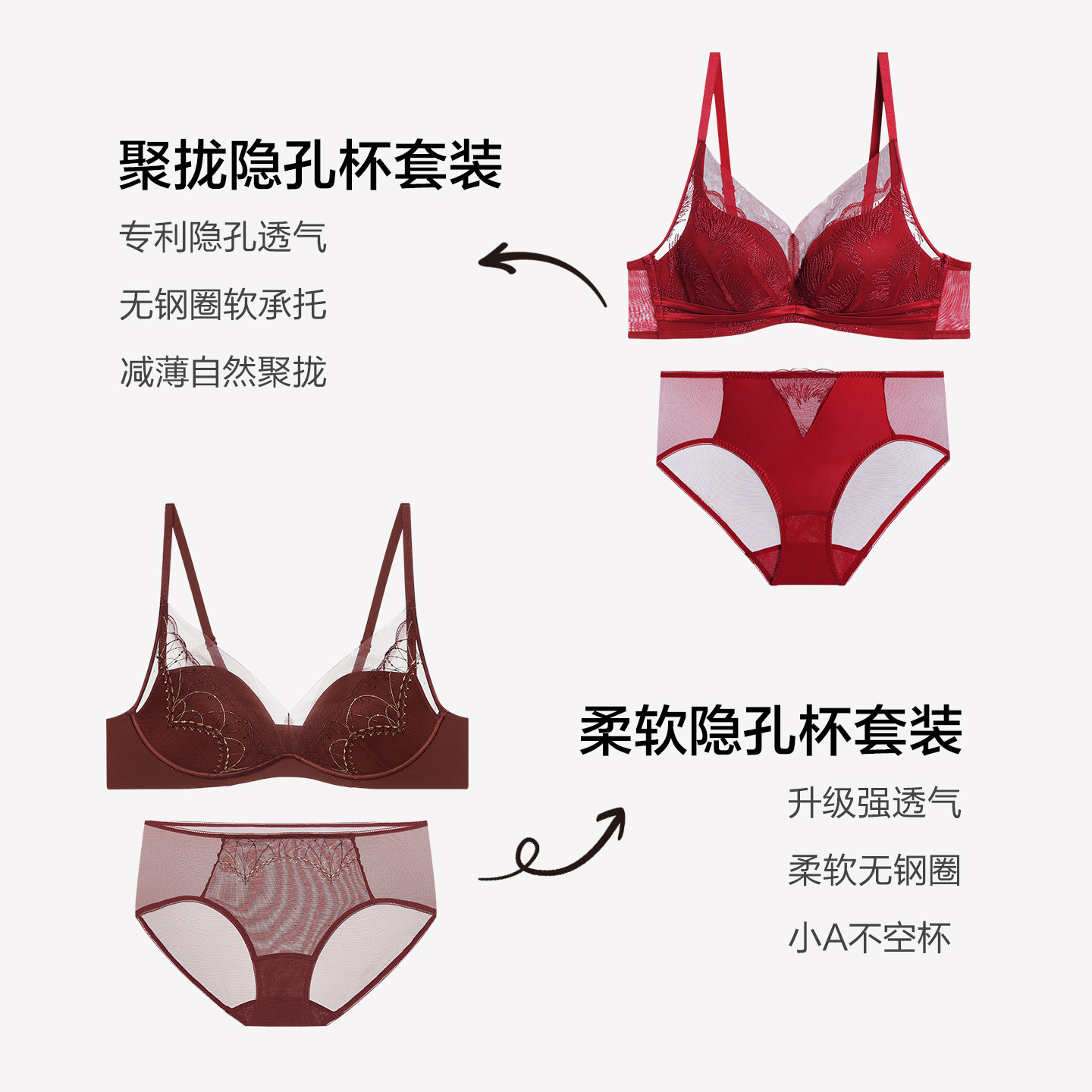 草本初色内衣套装女本命年红反重力提拉小胸聚拢无钢圈收副乳文胸