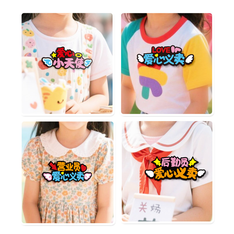 淘宝不织布爱心义卖胸针定制学校义卖摊位装饰收银员小学生创意胸牌