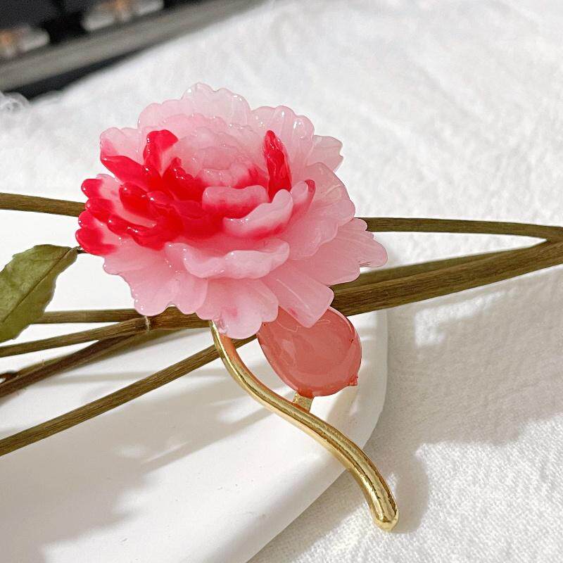 淘宝古风胸针汉服配饰古装胸花别针衣服配饰高颜值胸针粉色富贵花胸针