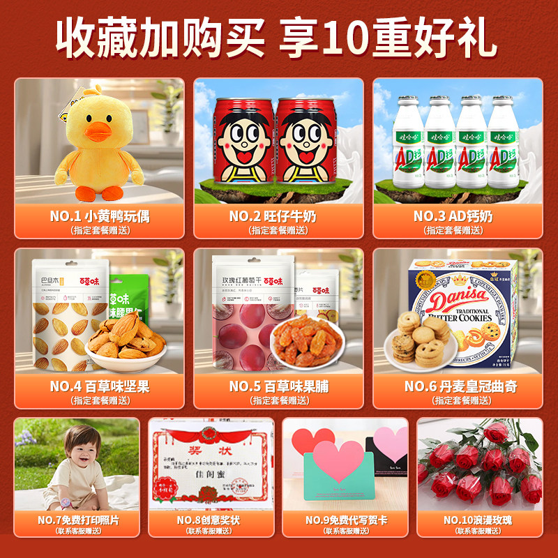 这款超大混装零食大礼包,是专为女友生日、情人节等浪漫时刻精心准备的贴心礼物。内含数十种精选健康零食,涵盖坚果、果干、肉脯、糕点等多样口味,兼顾美味与营养,满足日常解馋需求。包装精美大气,色彩温馨,附赠贺卡与丝带,送礼更有仪式感。无论是办公室小憩、追剧时光,还是旅行途中,都能带来满满幸福感。健康低添加配方,呵护她的味蕾与健康。用一份满载心意的零食礼盒,传递你的温柔与关爱,让甜蜜在舌尖绽放,爱意悄然蔓延。