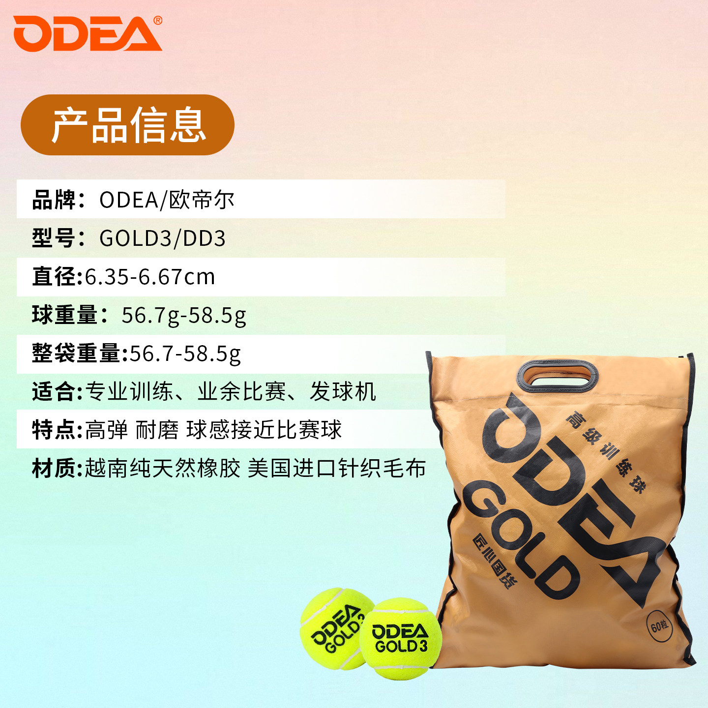 淘宝ODEA欧帝尔网球GOLD训练球耐打高弹DD3网球无压散装网球60粒袋装