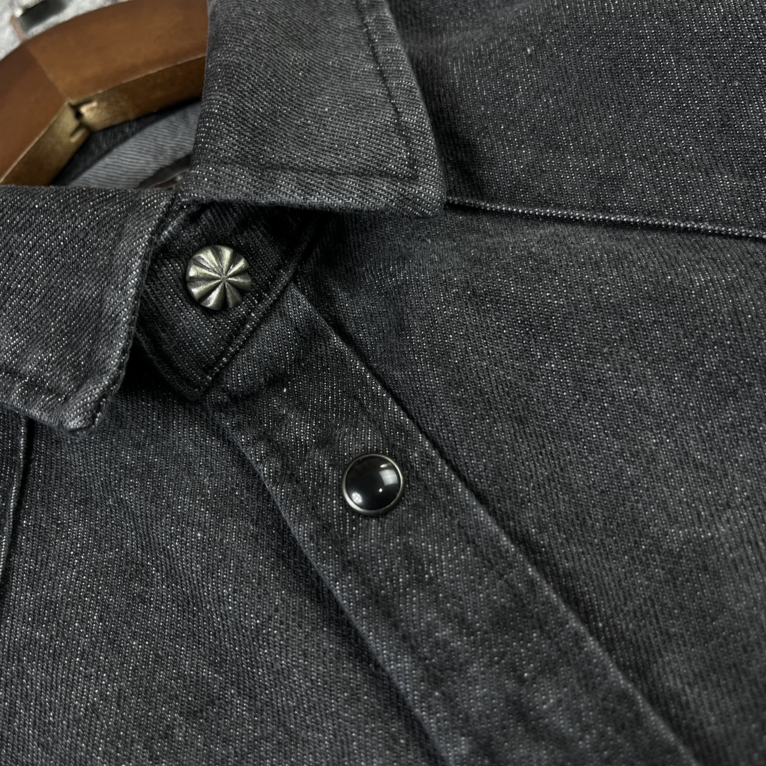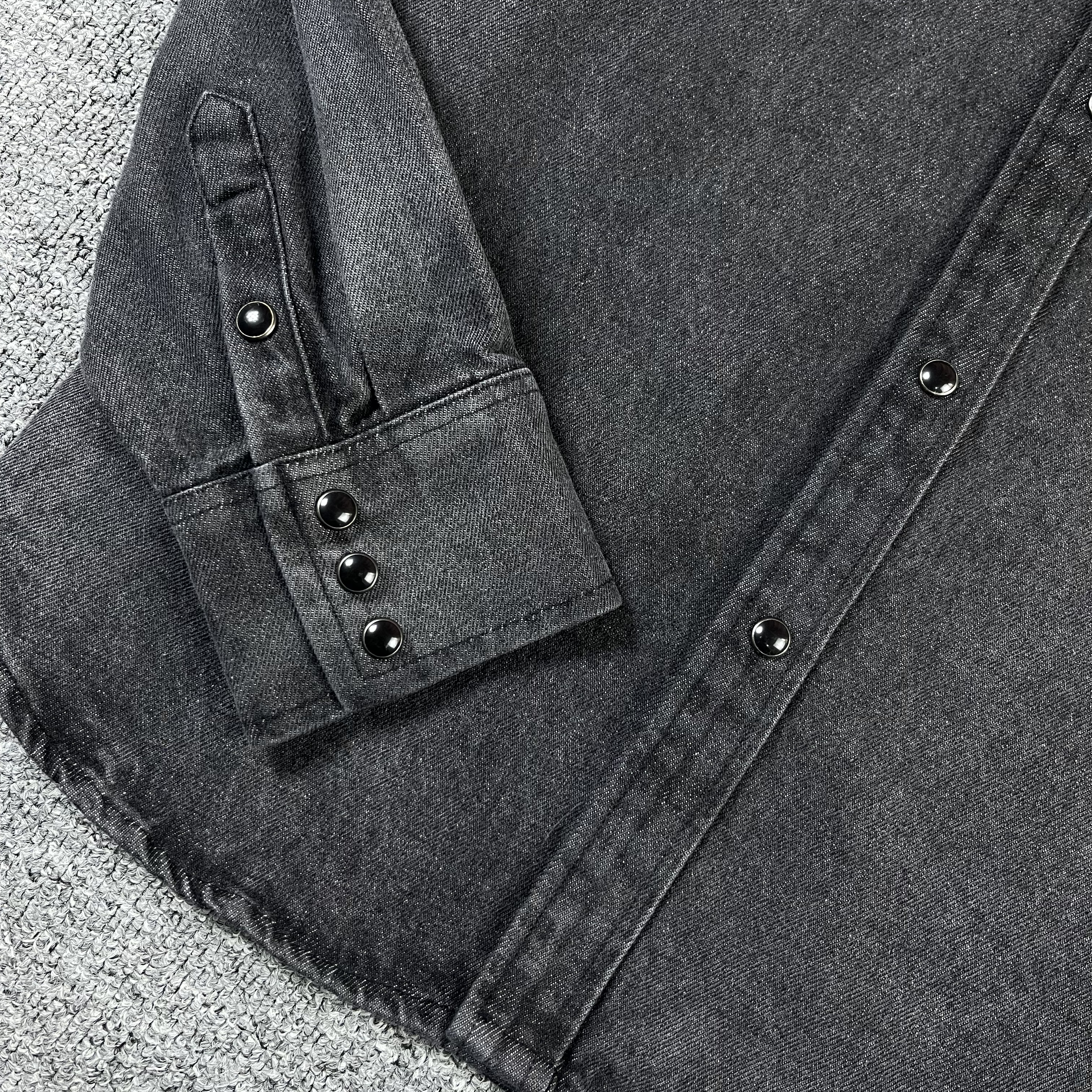 2025秋季新款男士牛仔衬衫宽松休闲黑色潮流欧美外搭寸衣男上衣装