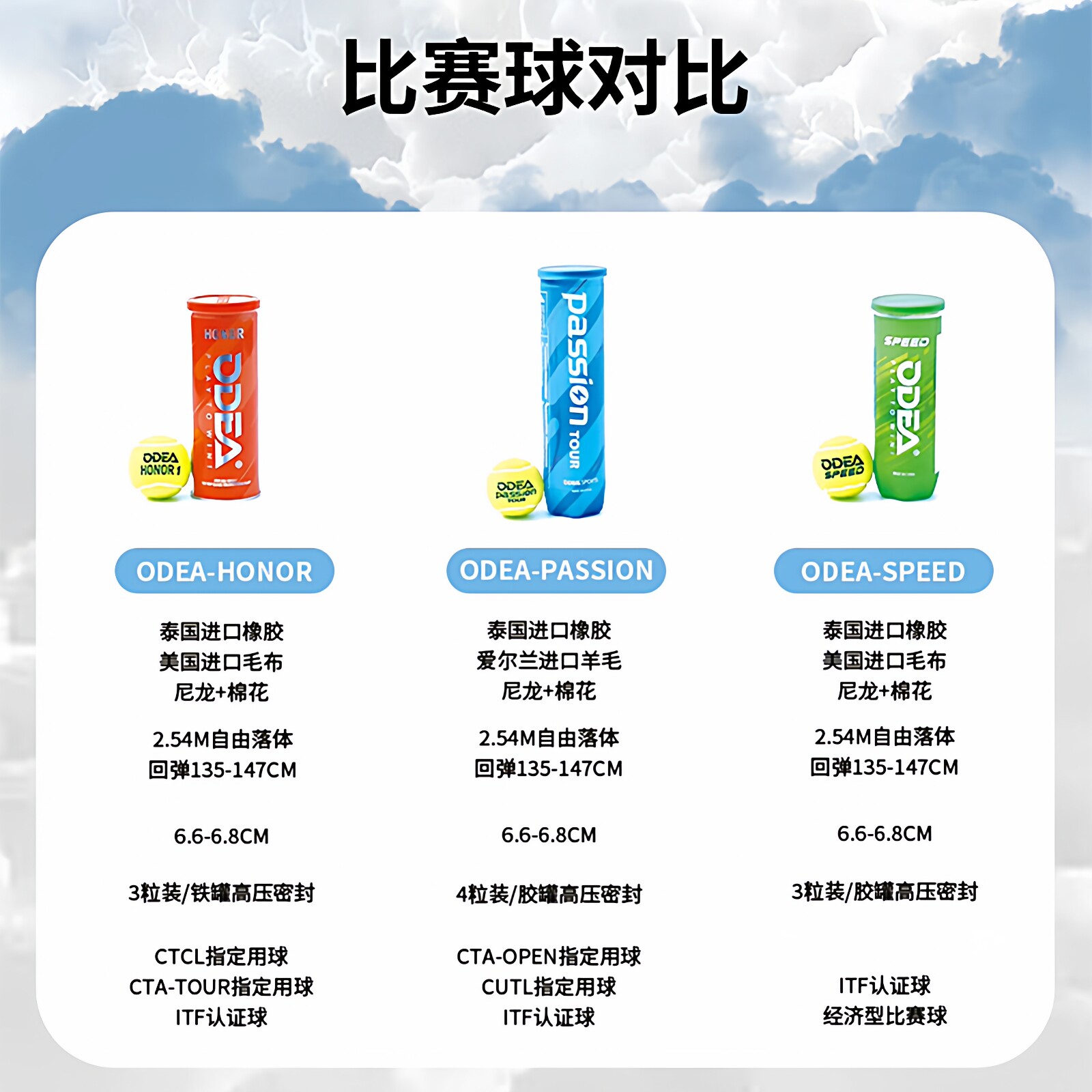 淘宝Odear/欧帝尔网球高级比赛训练用球耐打舒适弹性足PASSION/HONER