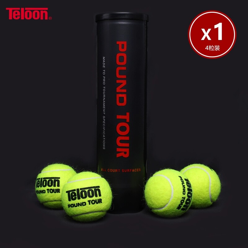 淘宝Teloon天龙网球Pound Tour P4气压足高弹耐打训练专业比赛球4粒装