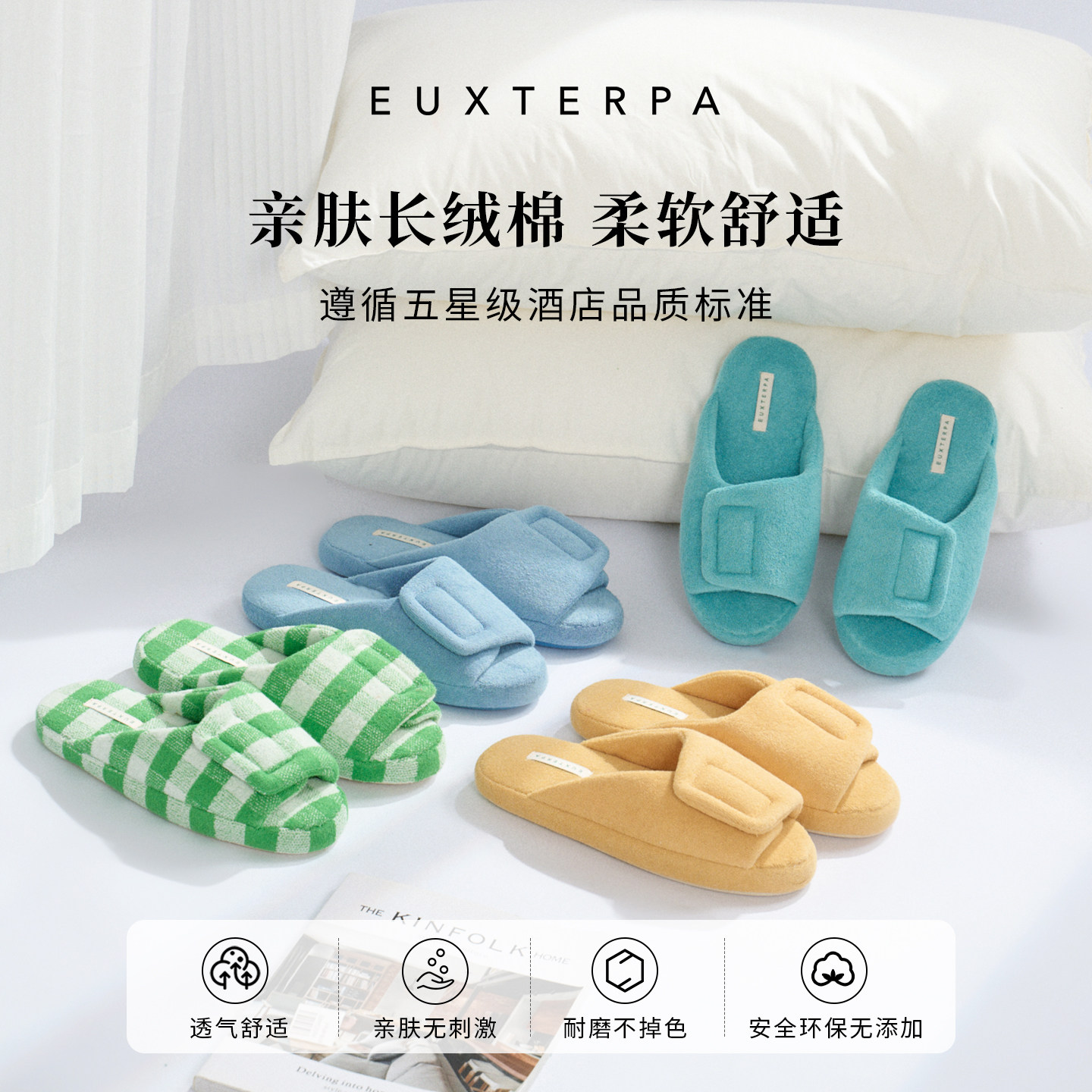 EUXTERPA欧特帕毛巾粘扣拖鞋是一款专为居家舒适设计的室内露趾拖鞋,男女通用。采用柔软亲肤的毛巾布材质,搭配可调节粘扣设计,贴合脚型,穿脱便捷。鞋底轻盈防滑,静音行走,有效保护地板,营造安静居家环境。特别优化的缓震结构带来“踩屎感”般的柔软脚感,久穿不累,适合日常居家、沐浴后或休闲时光穿着。简约时尚的外观兼顾实用与美观,是提升居家幸福感的高品质选择。无论是自用还是送礼,EUXTERPA都以其舒适体验赢得青睐。