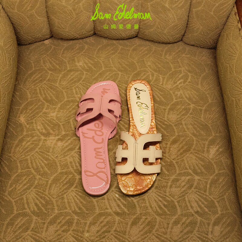 天猫SAM EDELMAN山姆爱德曼26春夏白色粉彩风牛皮外穿一字凉拖鞋女BAY