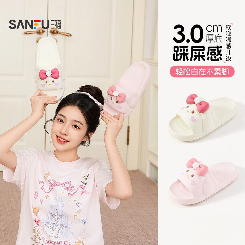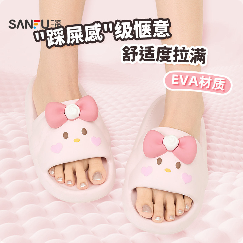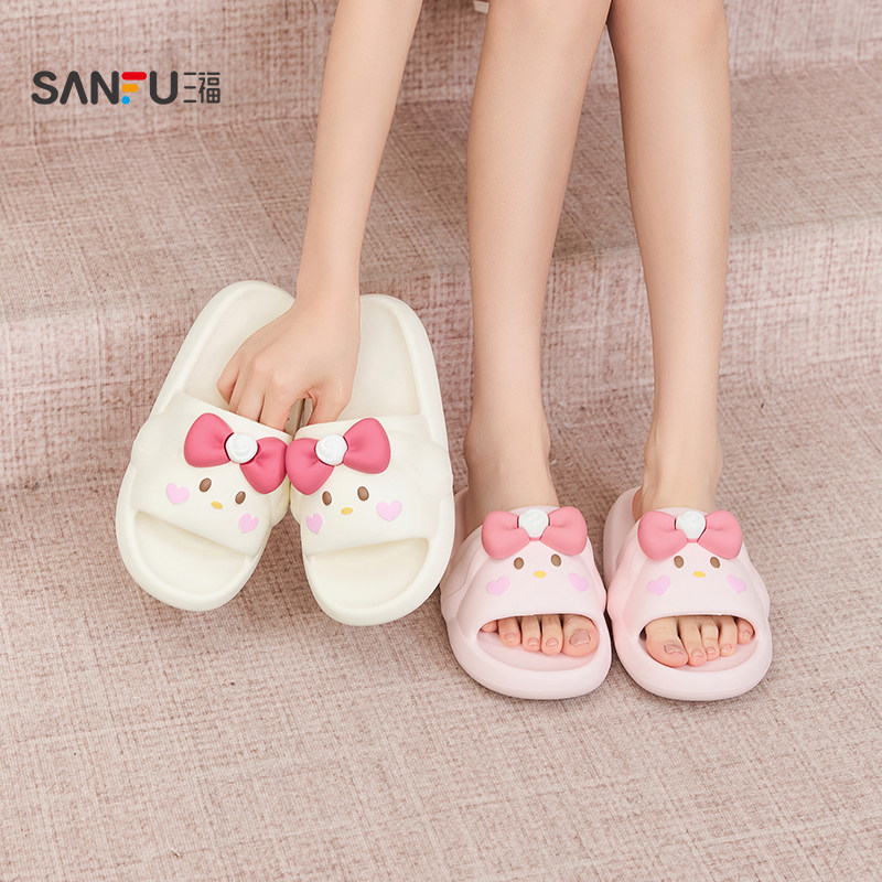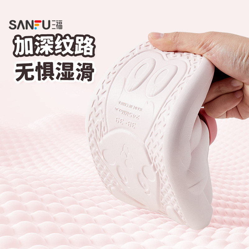 三福女款素色软底拖一字拖 简约生活日用好物家居凉拖鞋854132