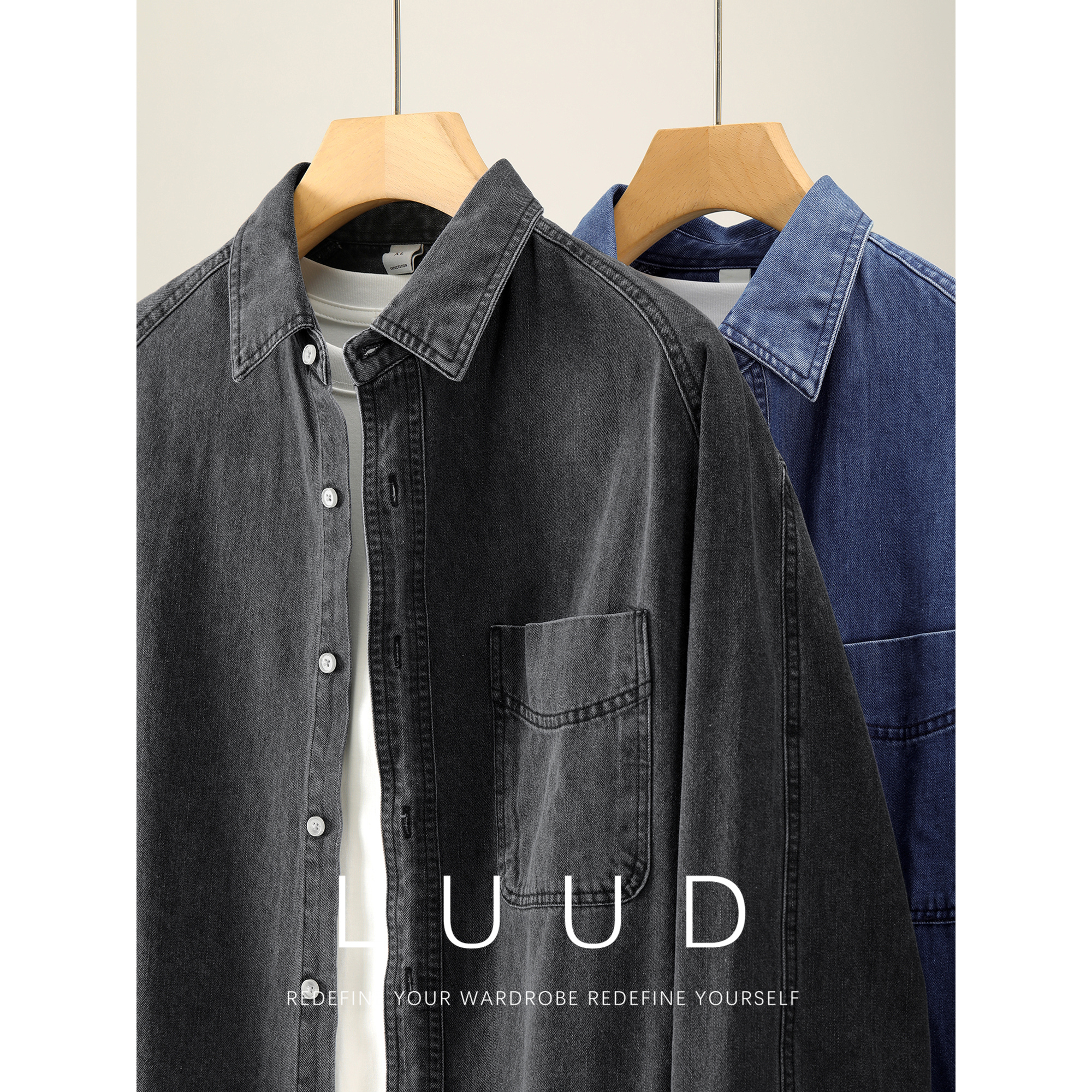 淘宝特价 日系复古水洗棉牛仔长袖衬衫男辑明线口袋重磅280g衬衣外套