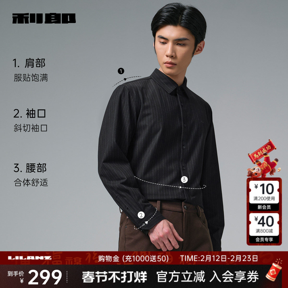 天猫【加绒厚款/色织条纹】利郎衬衫男2025冬季商务休闲男装保暖衬衣