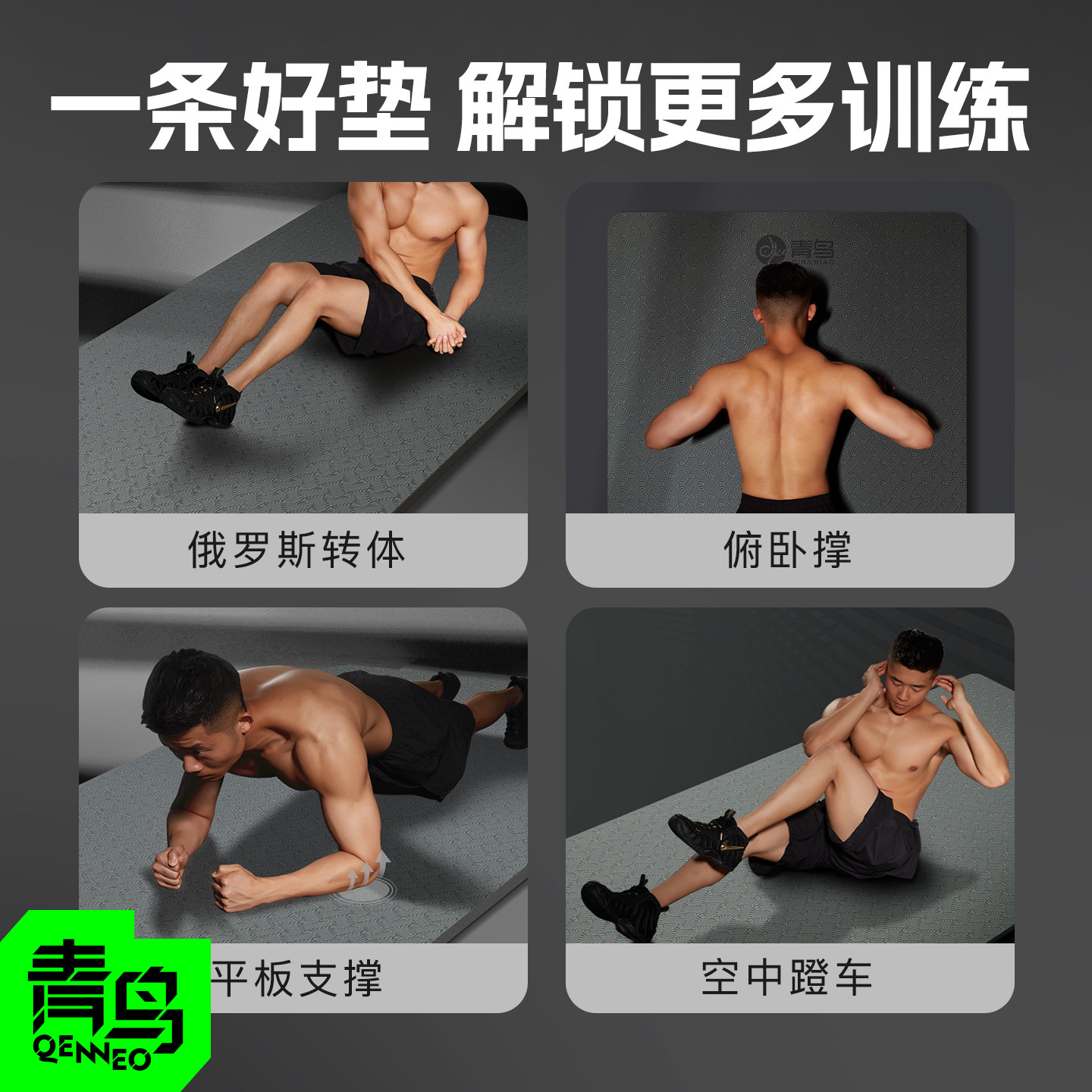 青鸟女士健身垫加厚瑜伽垫加大加宽家用健身防滑减震tpe静音垫子