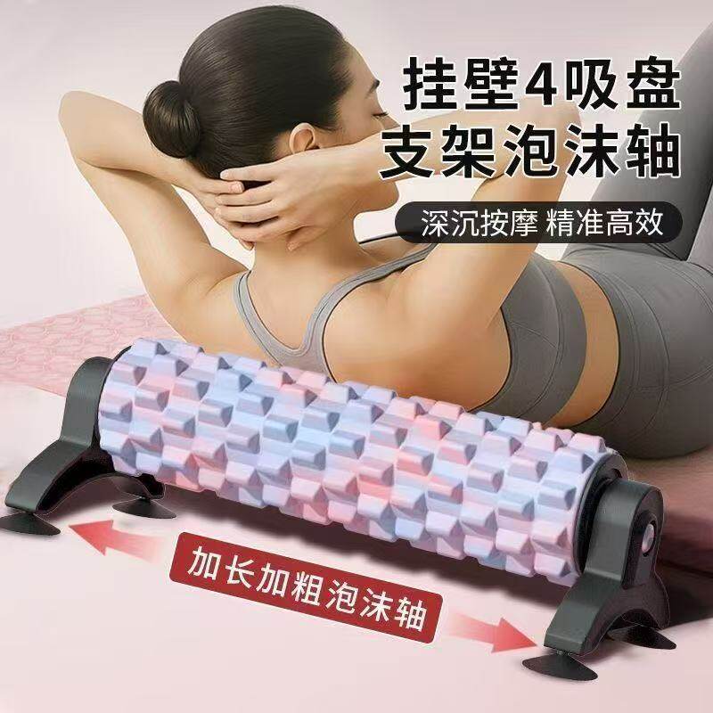 淘吸盘可拆卸支架瑜伽柱泡沫轴放松实心滚轴狼牙棒按摩滚筒瘦腿健身