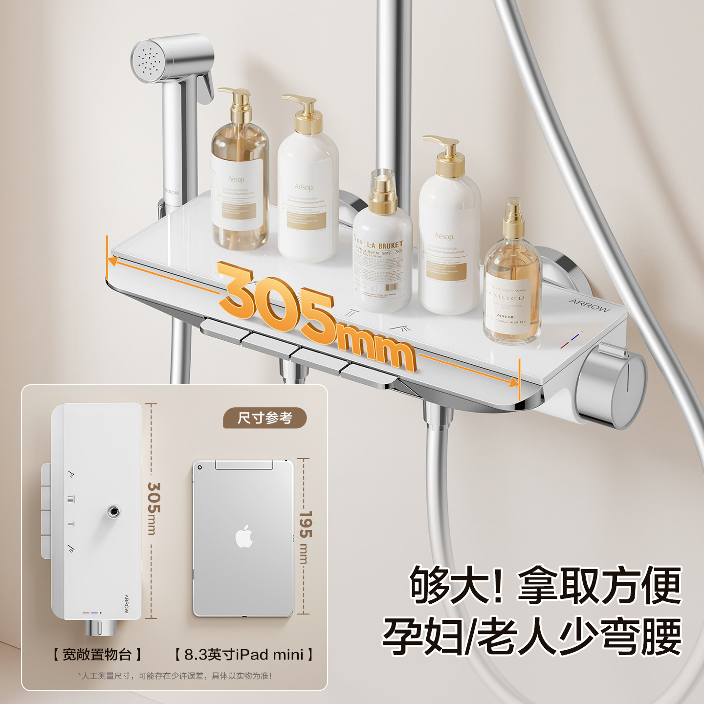 天科勒艾贝灵控Pro335mm恒温大顶喷置物台淋浴花洒龙头