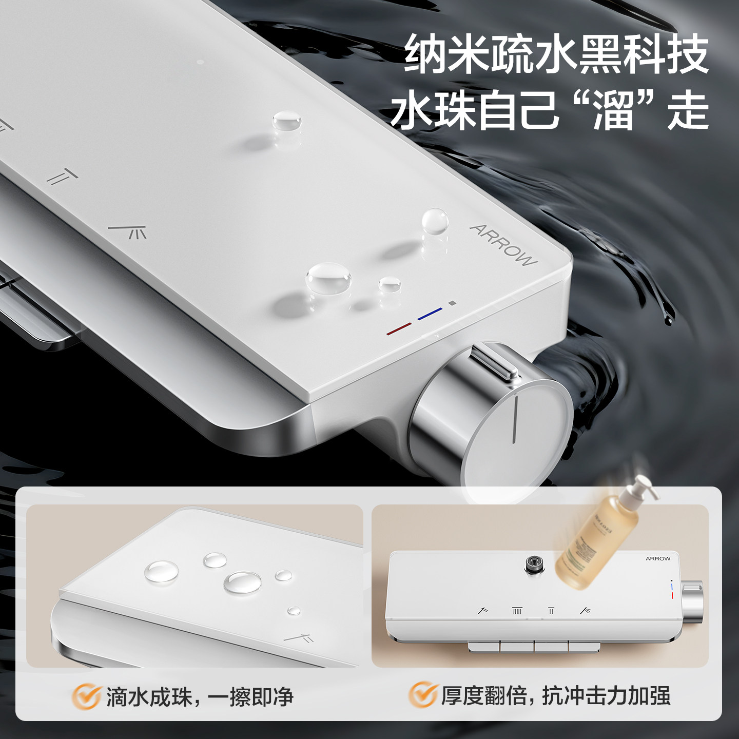 【直播补贴】箭牌卫浴K530琴键智能数显淋浴花洒套装增压大顶喷
