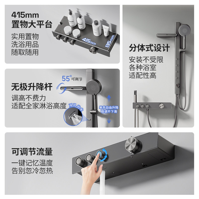 天FLOVA丰华卫浴 枪灰色恒温淋浴花洒套装推钮式开关温控瞬停顶喷